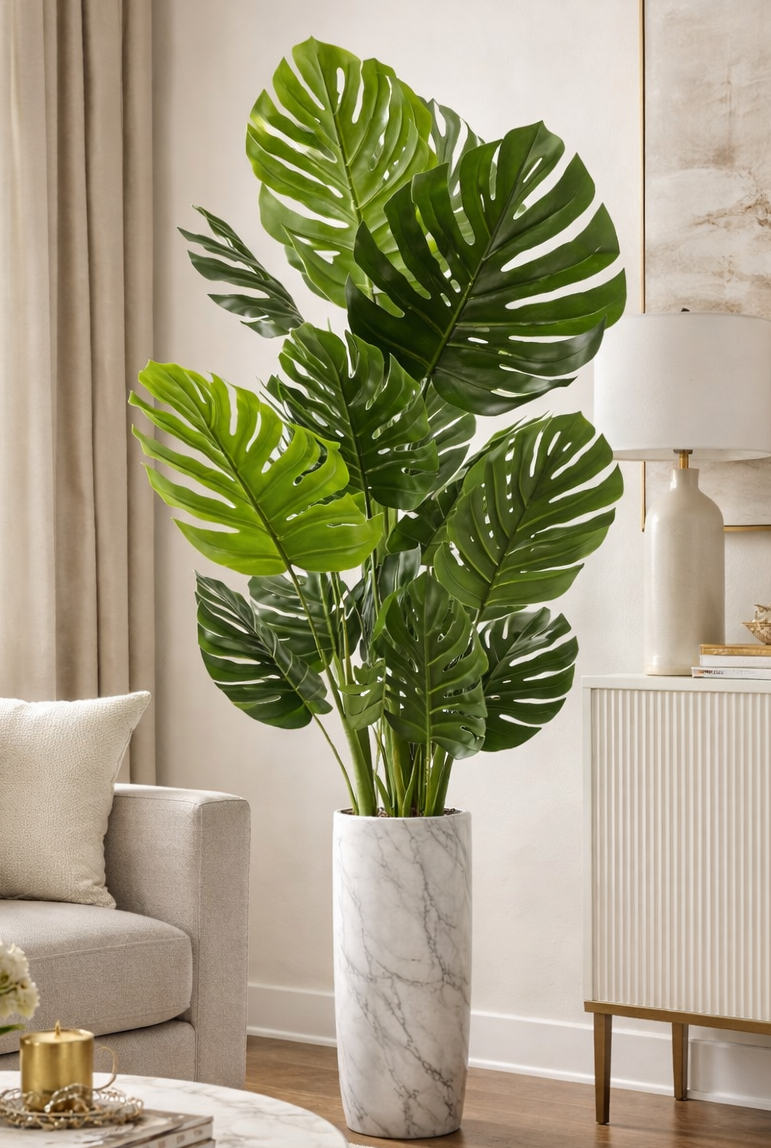• Lifelike 170 cm Monstera Design: Features a stunning, realistic Artificial Monstera Tree 3 trunks with 15 leaves standing at approximately 170 cm (5.6 feet) tall, providing a vibrant, cheerful focal point that instantly enhances any indoor space. Package has 3 palm TRUNKS. (Vase is not included)