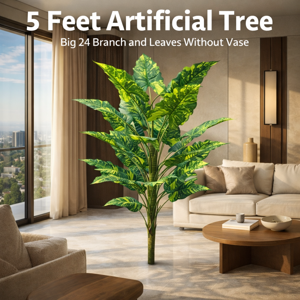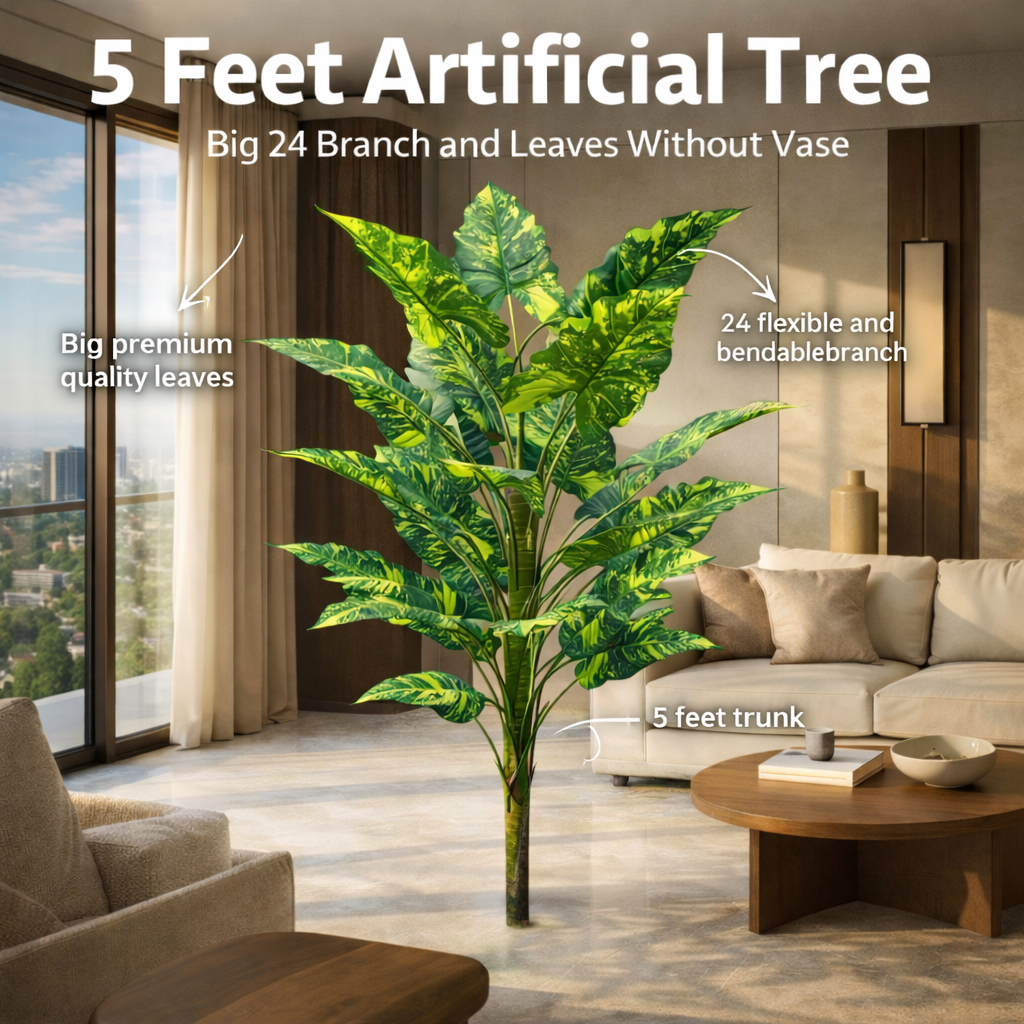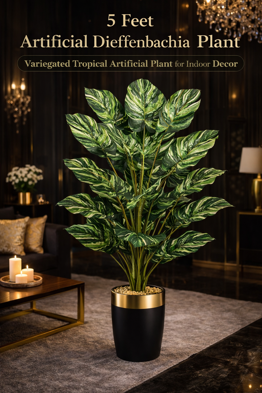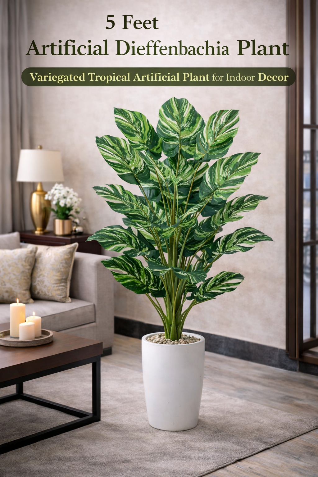 - Lifelike 150 cm Dieffenbachia Plant Design: Features a stunning, realistic Artificial 24 Leaves Dieffenbachia Plant standing at approximately 150 cm (5 feet) tall, providing a vibrant, cheerful focal point that instantly enhances any indoor space. Package has 3 TRUNKS. (Vase is not included)