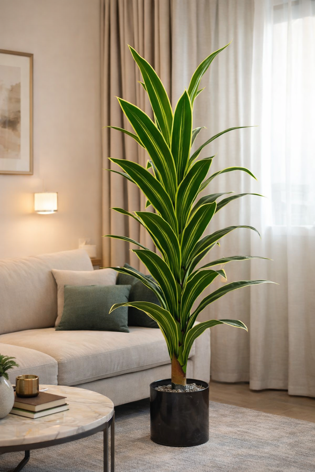Botanical Realism: Artificial 6 feet Dracaena plant Features high-density, variegated leaves with natural color gradients for a “real-touch” appearance.