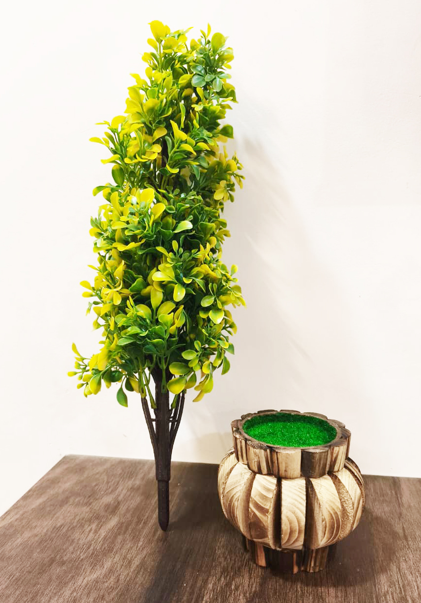 KAYKON Artificial Green Bonsai Plant with Wooden Pot – 14 Inch/35 cm